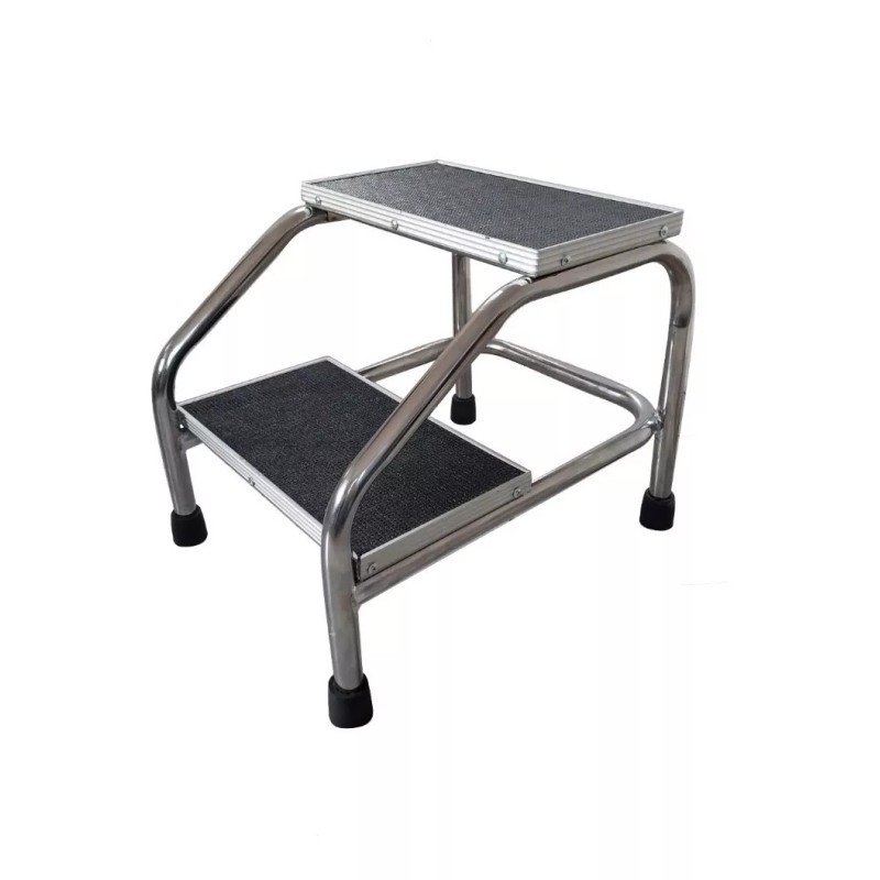 Sus dos peldaños están cubiertos con goma antiderrapante