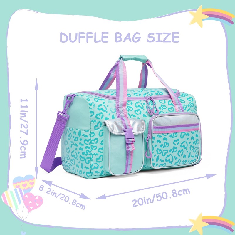 Oruiji Kids Duffle Bag Girls Women Travel Bag Gifts Overnight Bag for Girls Women Tote Bag Sleepover Bag for Girls Gym Dance Bag with Shoes Compartment, Love Green