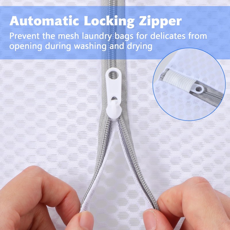 - 【Automatic Locking Zipper】The zipper on the laundry bags mesh wash bagsfor washing delicates is rust-proof, durable, and strong, and the smooth zipper comes with automatic locking and smart protection zipper function to prevent the mesh laundry bags for delicates from opening during washing and drying.