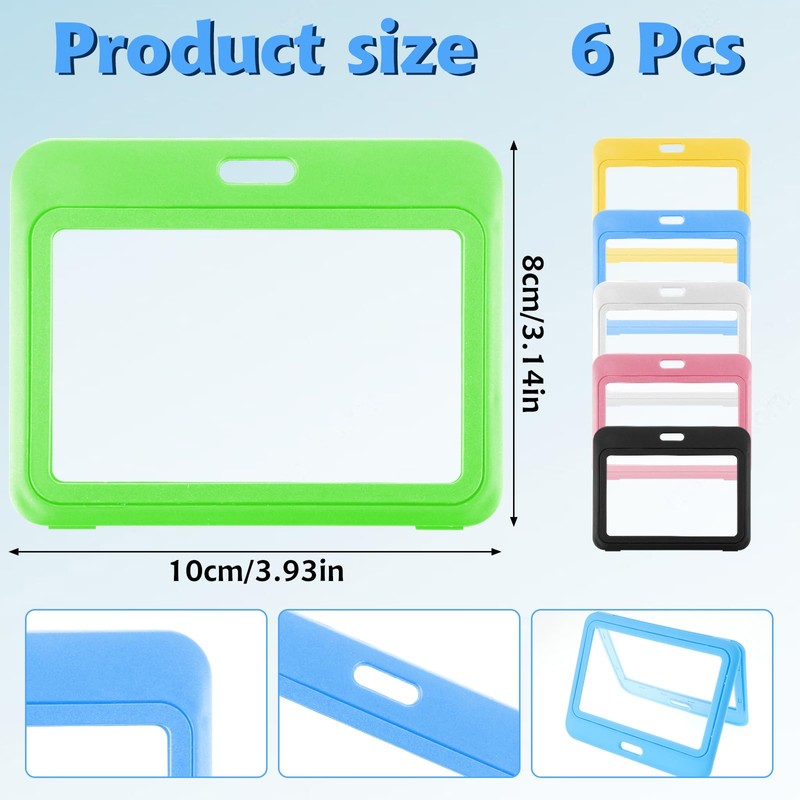 Oruola 6pcs Plastic ID Badge Holder Horizontal