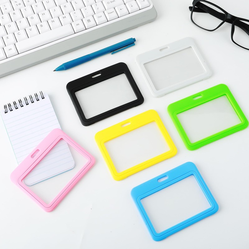 Oruola Pack of 6 Plastic Horizontal ID Card Holders with Double-Sided Transparent Window, ID Card Holder for Office, School, ID, Credit Cards, Proximity Keys, Driving Licences