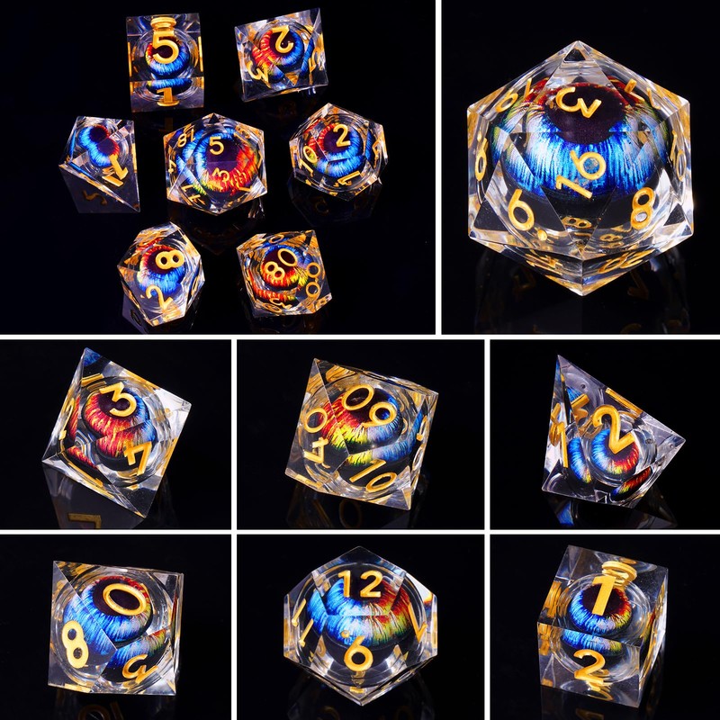ORUZA 7 Pieces Dragon Eye Polyhedral Resin Game Dice DND Dice Set D&D Dice fo...