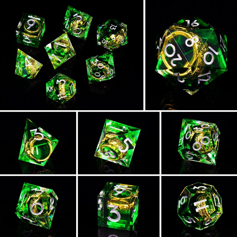 • ORUZA Lord of the Ring DND Dice Resin Polyhedral D&D Dice Set for Dungeons and Dragons RPG MTG Table Games Green and White 7 Pieces
