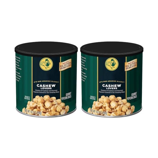 - Taste the decadence with clusters of fluffy popcorn and crunchy cashews covered in a glaze made with real butter and brown sugar