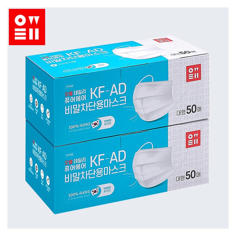 Orwell Pure Air Droplet Blocking KF-AD Mask 50 sheets x 2 / 오웰 퓨어에어 비말차단 KF-AD 마스크 50매 X 2개