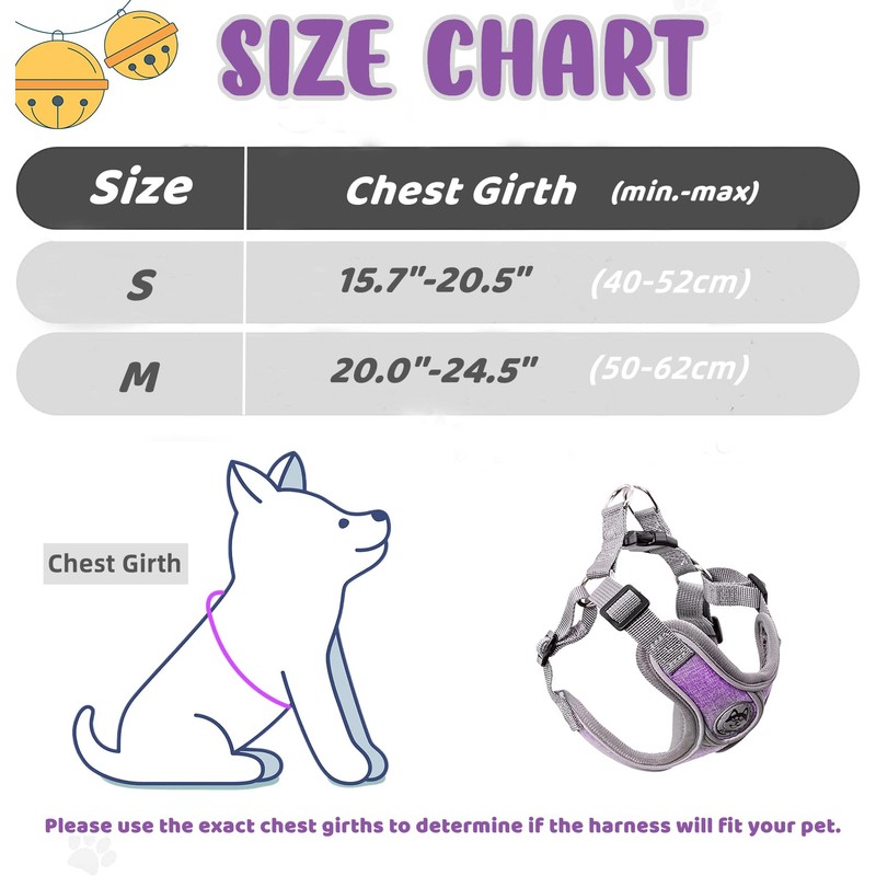 - 【Dog Harness for Medium Dogs】: Chest: 20.0"-24.5" (50cm-62cm)- please choose a size based on your dog's chest girth by measuring around the widest part of your dog's chest before purchase, recommend for small and medium dogs, such as Bulldog, Corgi, Shiba Inu, Puggle, Boston Terrier, Dachshund, Heeler, Boxer, Beagle, etc. Please note that this harness is not chew-proof. Please place the dog vest out of your dog's reach