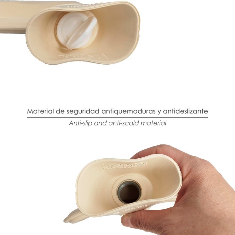- Der luftdichte Verschluss macht die Wärmflasche eine gute Isolierleistung. Füllen Sie nur bis zu 2/3 seiner maximalen Kapazität. Verwenden Sie kein kochendes Wasser. Die empfohlene Wassertemperatur sollte 42°C nicht überschreiten.