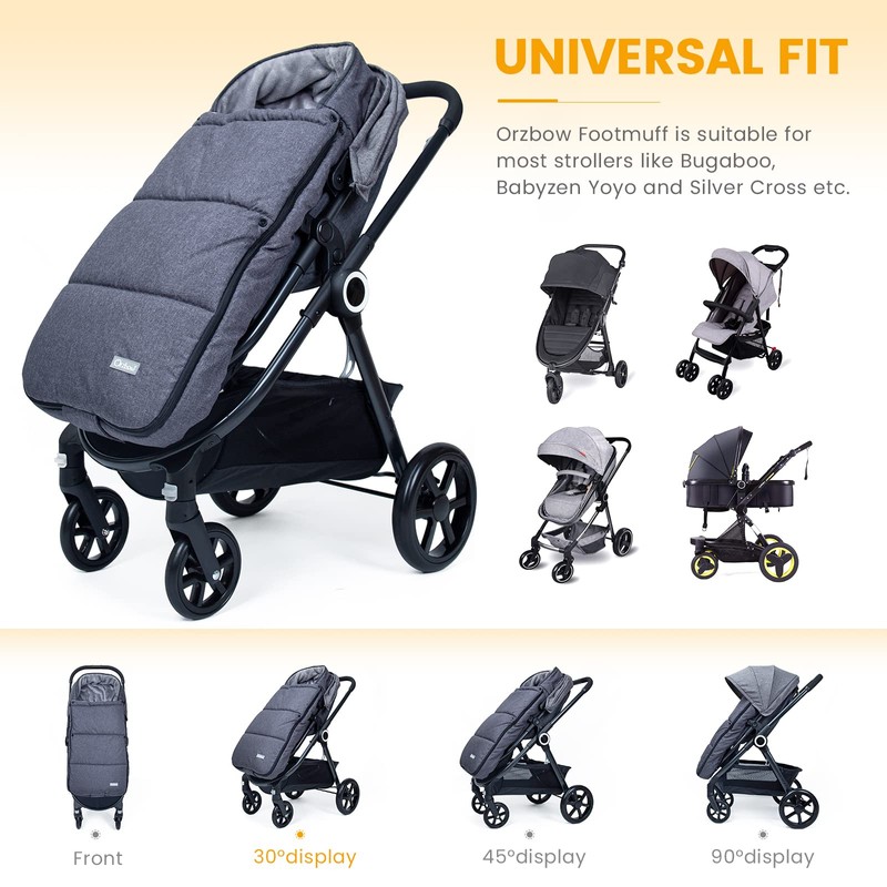 - 💯 UNIVERSAL FIT & EASY CARING: Orzbow Footmuff with the size of 90cm*40cm and 5 Harness Slots is designed for fitting most stroller,baby car seats,carrycots and bassinets etc.,whose front and rear cover can be separated for machine washing (up to 30 ℃),saving your precious time and energy