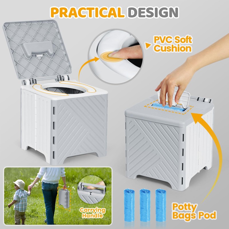 - Easy To Use: Orzbow Portable Potty is simple to unfold and store, you can have an emergency toilet ready in a very short time; It comes with potty bags in the lid of the bidet, which allows you to quickly access the leak-proof disposable potty bag