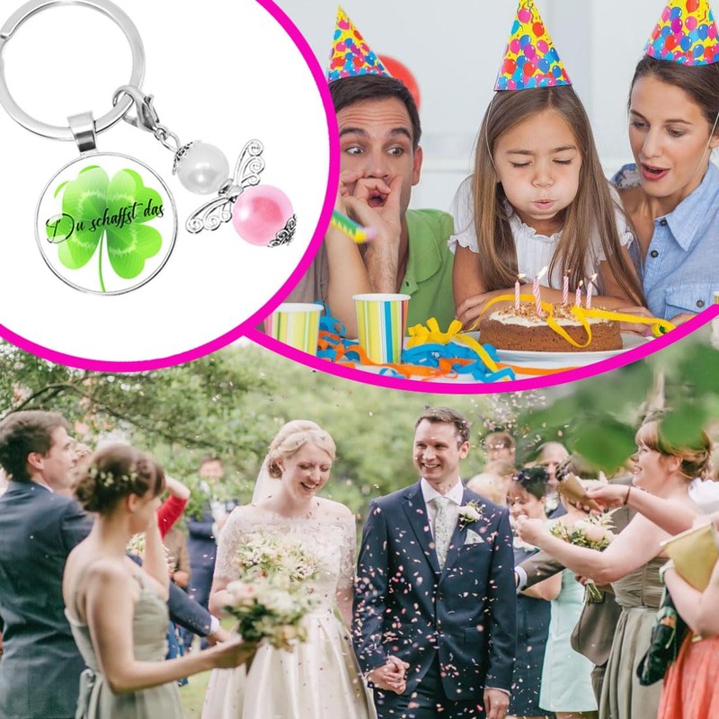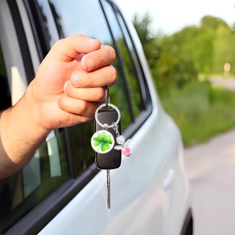 - Unique design: elegant keyring with inspirational "Du schaffst das " saying, a four-leaf clover as a lucky charm and a lovingly designed angel pendant. Perfect combination of style and symbolism.