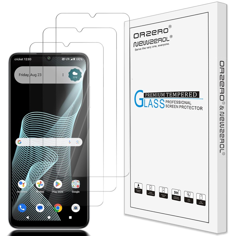 Orzero (3 Pack) Tempered Glass Screen Protector Compatible for Cricket Icon 6, Protector De Pantalla High Definition Anti-Scratch Bubble-Free