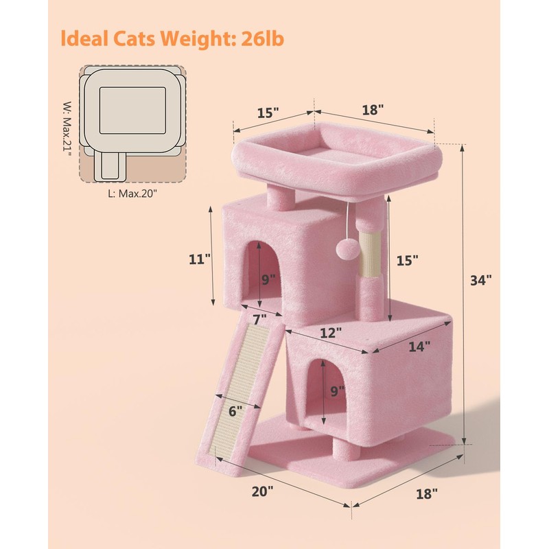 - [Sturdy and Secure] Supported by a strong structure and secured with an anti-tip kit, this cat tree is strong and safe for up to cat (max. 26lb) to climb and play with peace of mind