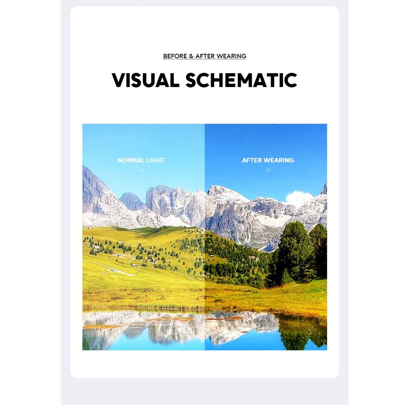 - UV protection: the tinted lenses that can block UVA and UVB rays, more comfortable to wear, ensure clear vision and more natural vision, especially while driving.