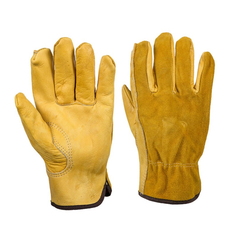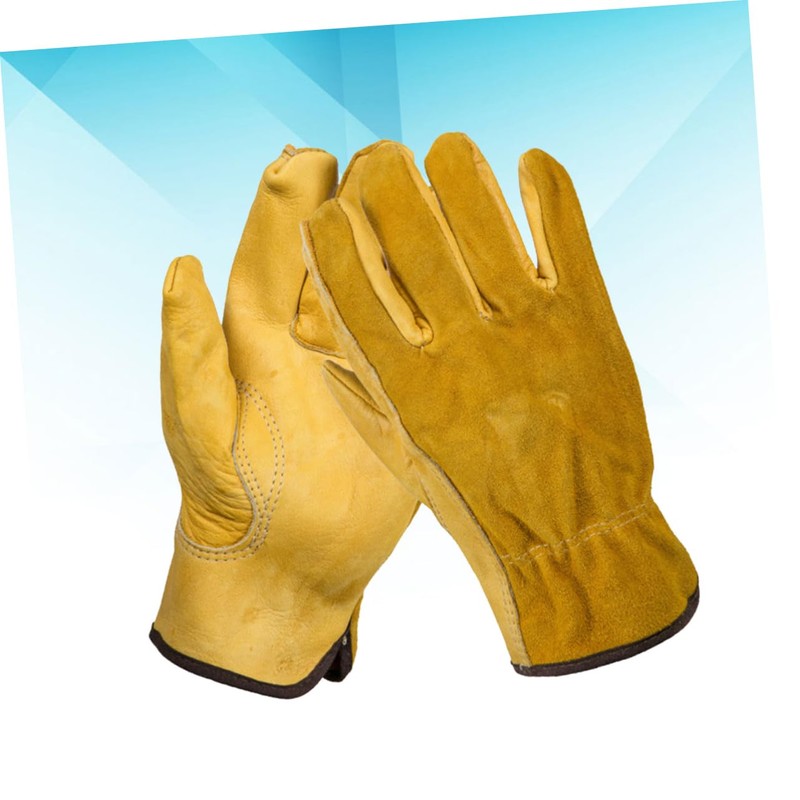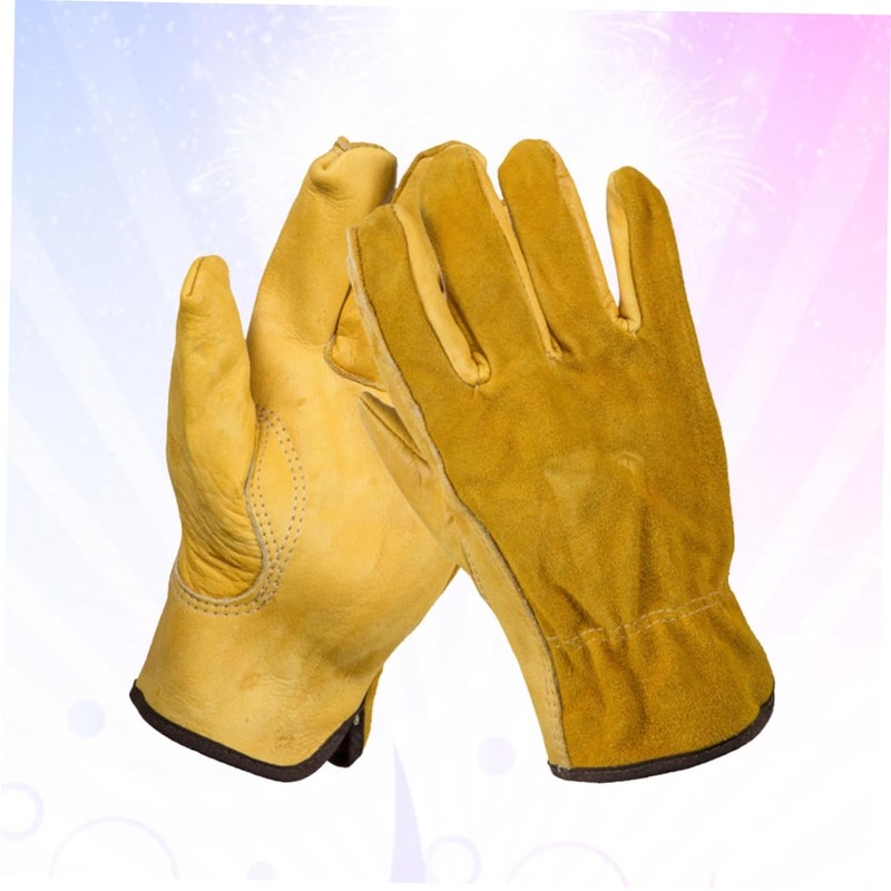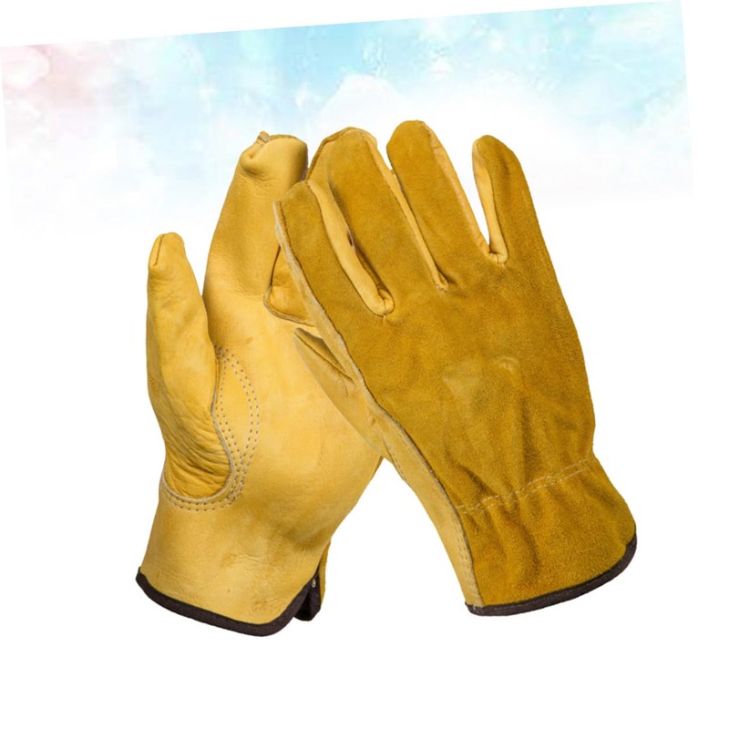 OSALADI 1pair Cow Leather Protective Gloves for Gardening and Welding Anti-cut Design Comfortable Fit Yellow