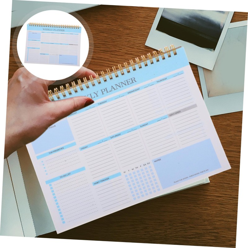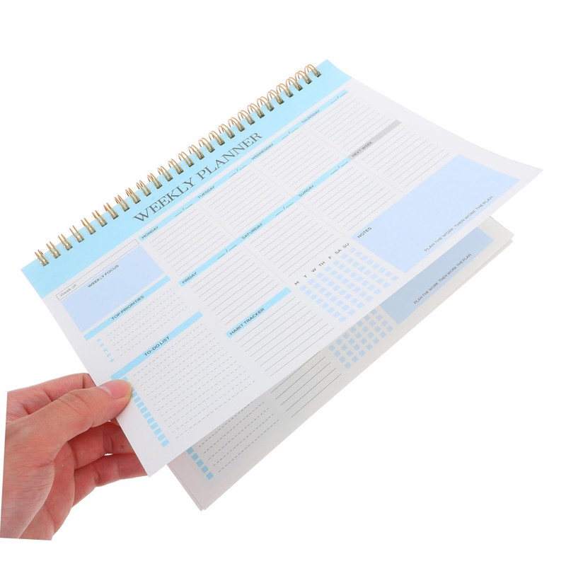 weekly schedule The Weekly Planner offers ample space for writing and planning your tasks, making it an ideal tool for categorizing and prioritizing your activities.task notebook This planner is a must-have for anyone looking to enhance their productivity.weekly planners Its spiral binding allows for smooth page-turning, while the paper cover provides a sturdy and stylish look