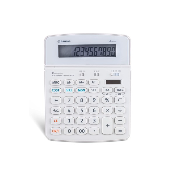 Osama BIG DISPLAY, 12-Digit Desktop Calculator with Large Tilting Display and Cost Sales Margin Calculation Function - White