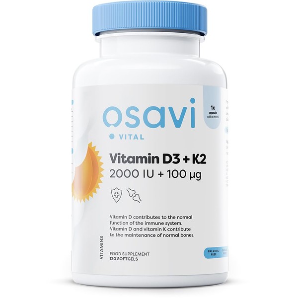 Osavi Vitamin D3 + K2, 2000IU + 100mcg - 120 softgels