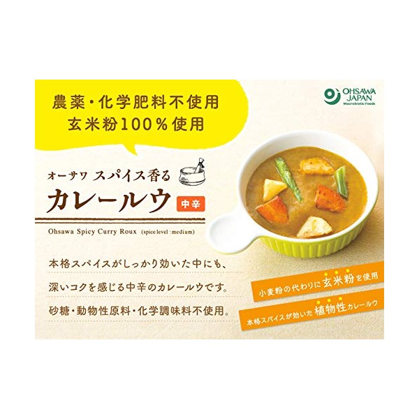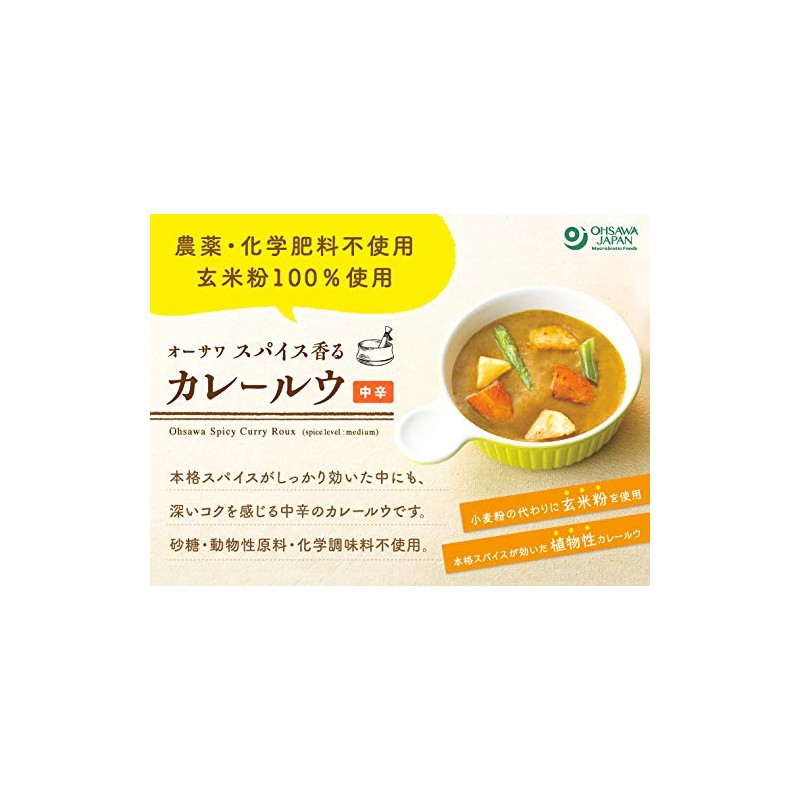 - Ingredients: Organic palm oil (from Colombia), brown rice flour (from Yamagata), maple sugar (from Canada), curry powder, salt (from Mexico), yeast extract, potato rice (from Hokkaido), apple juice (from Japan), powdered tomatoes (from Italy, etc.), organic black pepper (from Sri Lanka), organic cocoa (from Dominica)