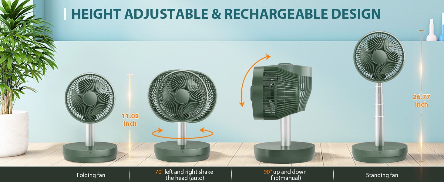- 【Super Cool & Quiet】 Although this rechargeable fan for home is small, its wind is very strong, which has 10 speeds to be chosen and can bring you enough coolness. At the same time, it uses an ultra -low noise design, which is less than 45db. A 70 ° automatic swing design, which circulates the air to every corner of the room.