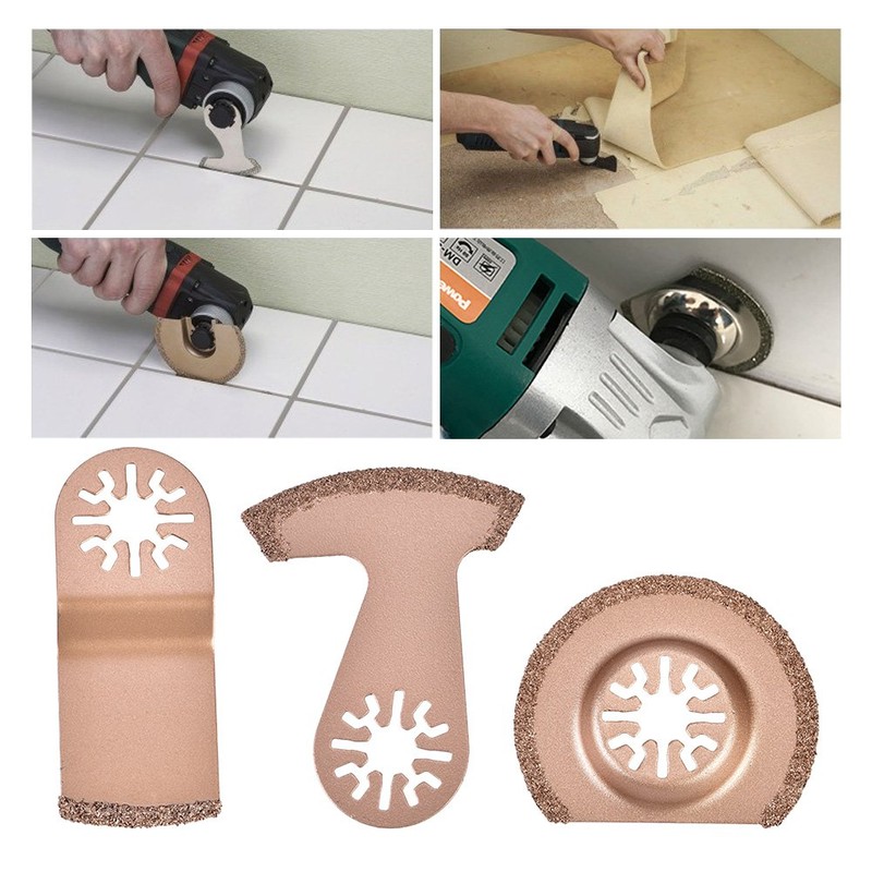Oscillating Multitool Quick Release Saw Blade Set, 3Pcs Oscillating Segment Multifunction Tool Carbide Saw Blade for Precision Cutting, Scraping, Grout Removing