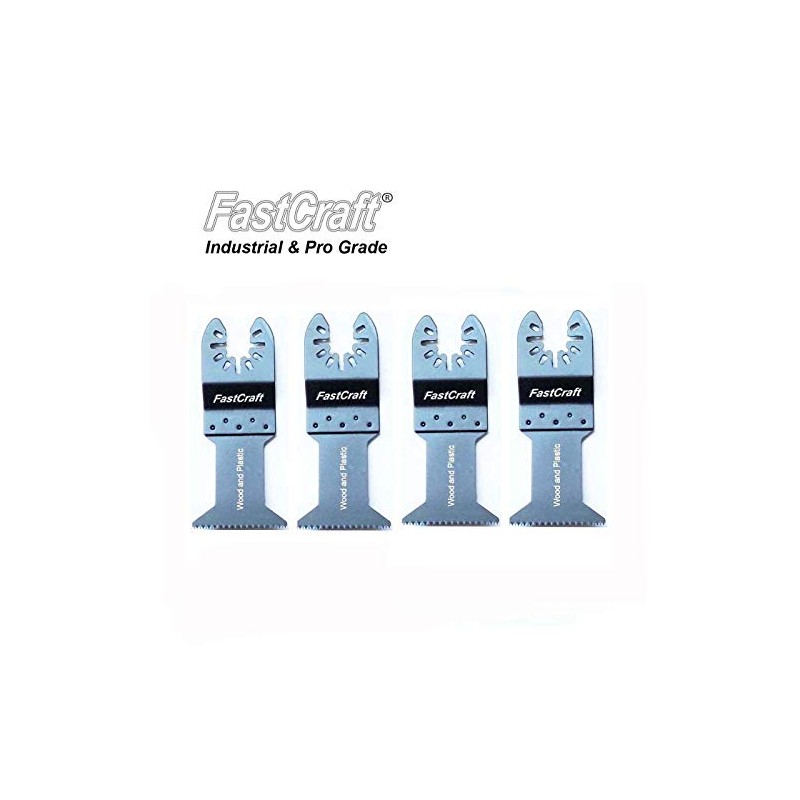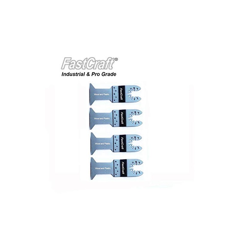 Oscillating Tool Blades, FastCraft® 4pc E-Cut (Wood/Plastic) HCS-SK5 All Industrial & PRO Grade Tough Cutting for Oscillating Tools [Bulk Packaging]