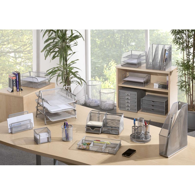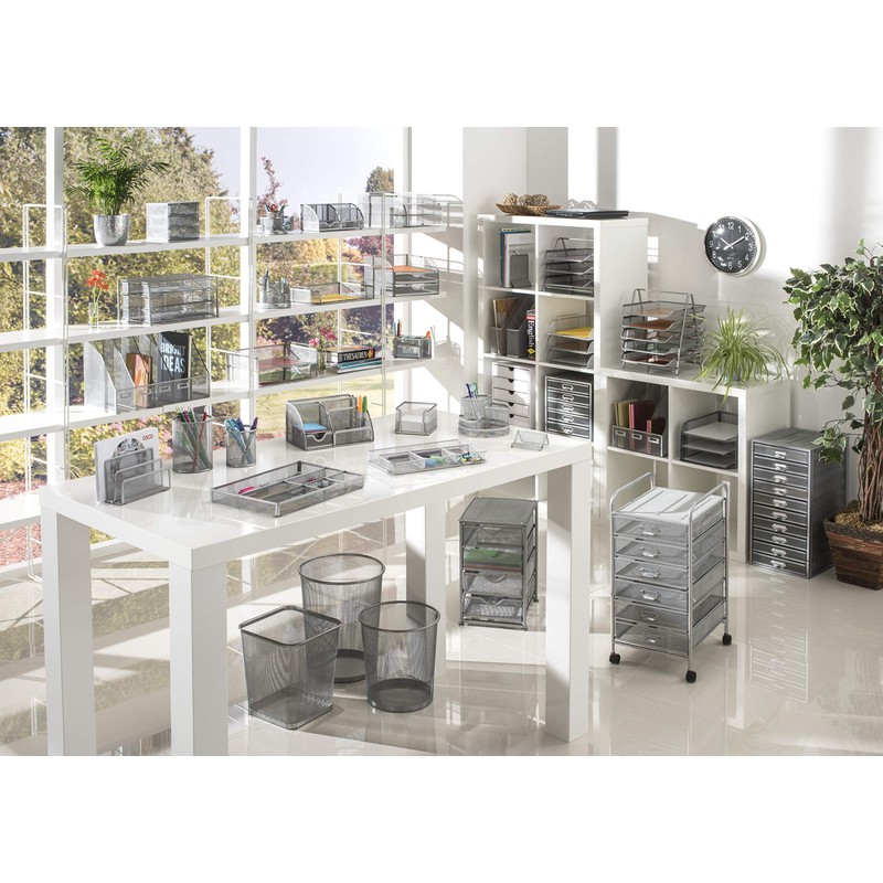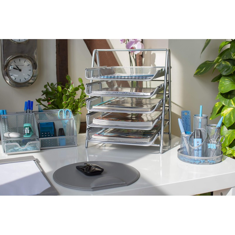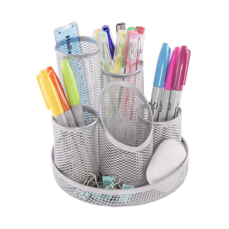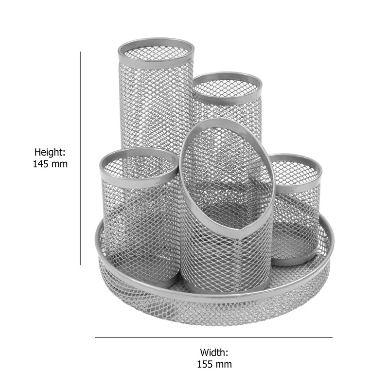 Osco Mesh Pencil Pot Scratch-Resistant with Non-Marking Base 5 Tube Silver