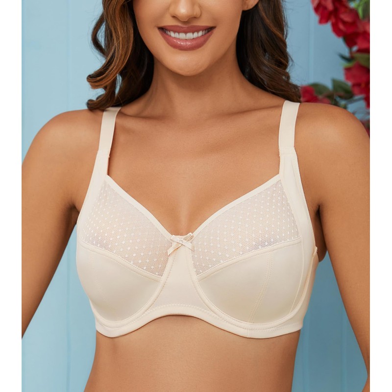 Oscrenia Plus Size Women's Full Coverage Non-Padded Bra Comfort Soft Underwire Wide Strap(Beige,36E)