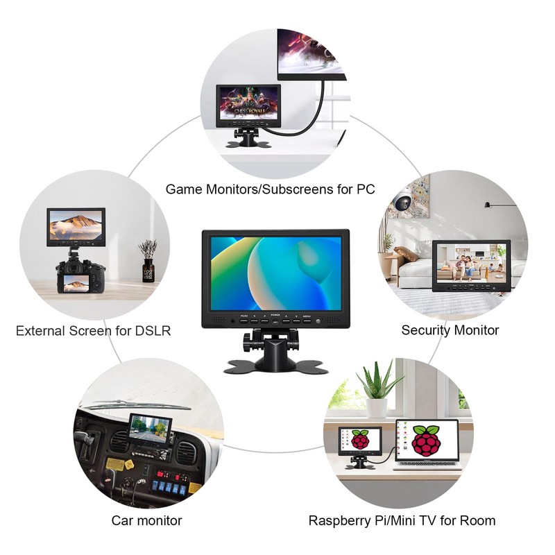 This 7 inch LED Display Screen has sleek, slim design with an elegant stand seamlessly blends into any tight space, and takes up less desktop space for a cleaner-looking office.It's a professional monitor with HD 1024x600 resolution offers clear color image.