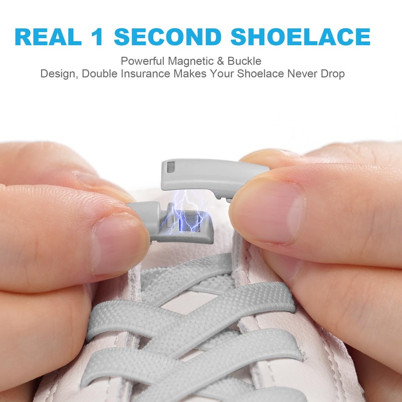 - EASY TO USE - Simply tie the laces to the shoe, tie the laces and cut off the excess length. Fasten the metal buckle at the end of the shoelace, twist the button, and you are done.