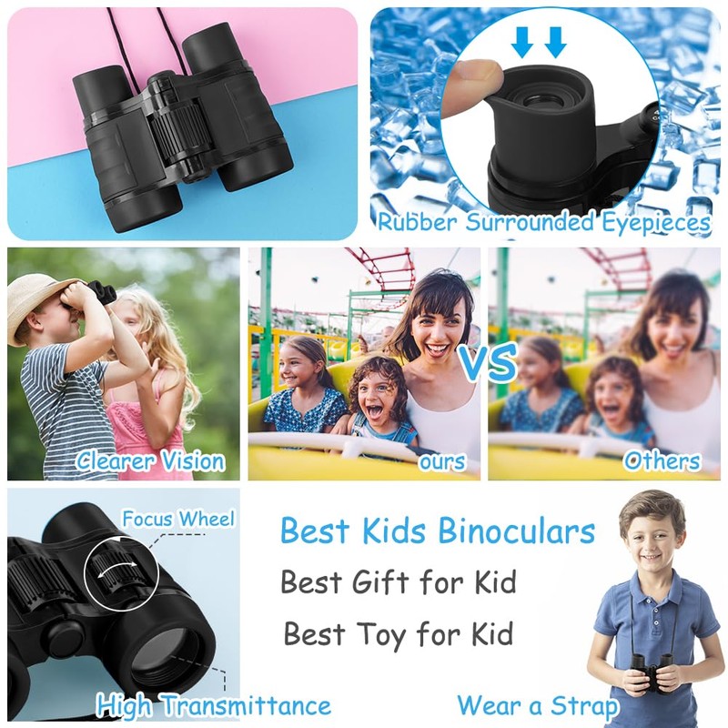 - ❤【BEST GIFT FOR KIDS】Specially designed for kids binoculars, the soft rubber eyepiece protects the eyes, so it won't hurt their eyes. The compact kids binoculars can be folded to match the child's eye-to-eye distance. Great for bird watching, learning, hunting, playing, boating, hiking, traveling and enjoying the wilderness! Explore the world with your kids! Great as a children's toy or educational gift.