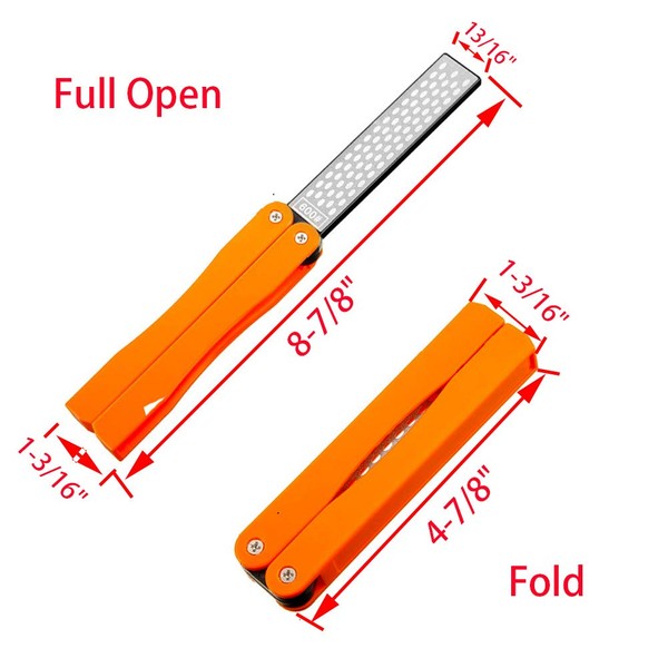 OSFTBVT Diamond Knife sharpener Pocket Sharpening Stone #400/600 Double Sides Folding Portable Orange - 1pcs