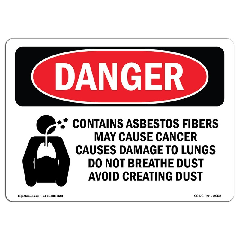OSHA Danger Sign - Contains Asbestos Fibers | Aluminum Sign | Protect Your Business, Construction Site, Warehouse & Shop Area | Made in The USA