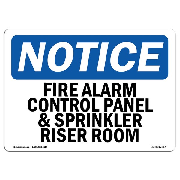 OSHA Notice Sign - Fire Alarm Control Panel And Sprinkler Riser Room | Aluminum Sign | Protect Your Business, Work Site, Warehouse & Shop |  Made in the USA