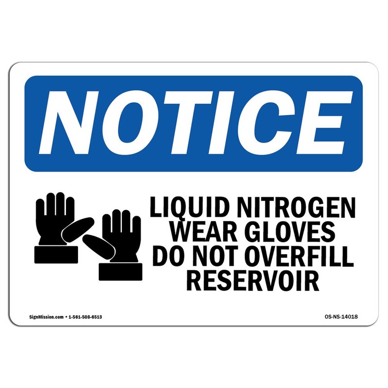 OSHA Notice Sign - Liquid Nitrogen Wear Gloves | Rigid Plastic Sign | Protect Your Business, Construction Site, Warehouse & Shop Area | Made in The USA