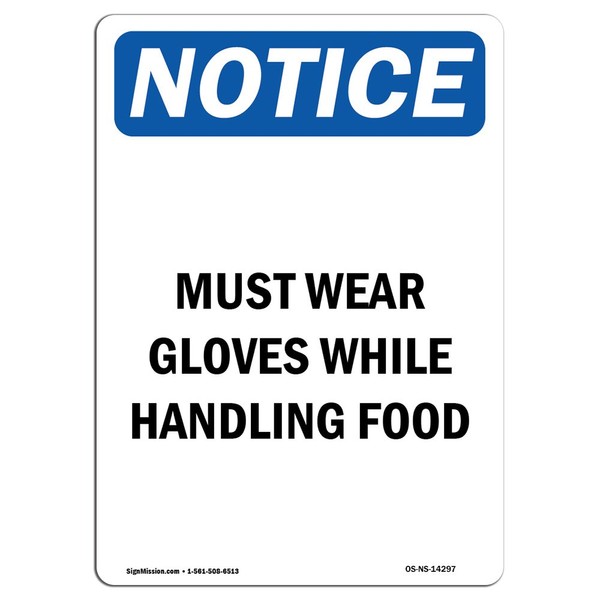 OSHA Notice Sign - Must Wear Gloves While Handling Food | Vinyl Label Decal | Protect Your Business, Construction Site, Warehouse | Made in The USA