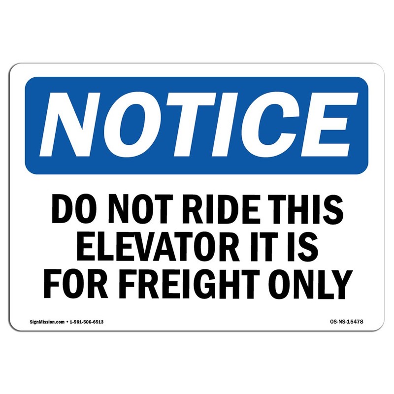 OSHA Notice Signs - Notice Do Not Ride This Elevator Freight Only Sign | Extremely Durable Made in The USA Signs or Heavy Duty Vinyl Label | Protect Your Warehouse & Business
