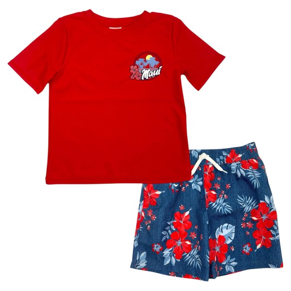 OSHKOSH B'GOSH Toddlers Boys' Swimsuit Trunk and Rashguard Set, Red 3T