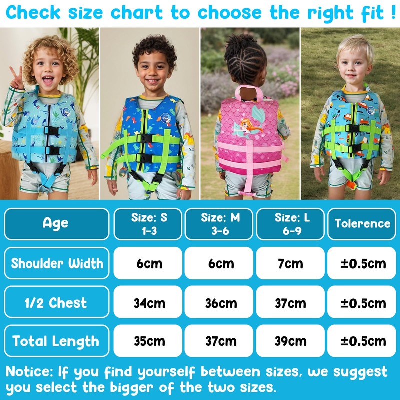 - EASY TO WEAR - Swim vest has zipper and buckle on the front, without cumbersome dressing process, which is convenient for parents to change for their children.