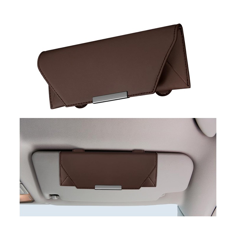 Osilly Car Sunglasses Holder, Sun Visor Eyeglasses Protective Storage Case with Hidden Magnetic Closure, Leather Automotive Glasses Organizer Box, Universal Vehicle Interior Accessories (Brown)