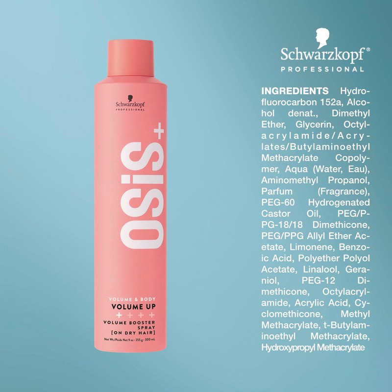 - VOLUME: Finish your look with an added volume and texture boost; OSiS+ Volume Up is a volumizing hair spray that provides lightweight and flexible style control with natural movement and feel