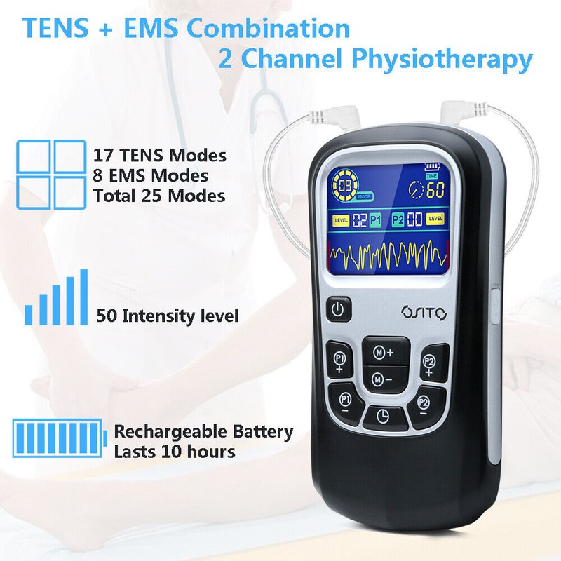 OSITO Rechargeable TENS EMS Unit Muscle Stimulator Device 25 Mode Pulse Massager