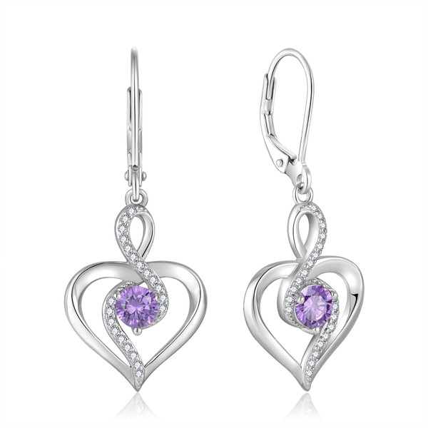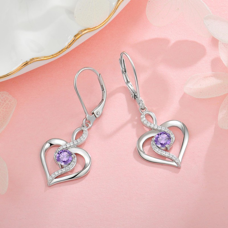 Oskani Heart Birthstone Dangle Earrings for Women, 925 Strlings Silver 5A Cubic Zircon Leveback Earrings Jewelry Birthday, Cubic Zirconia Sterling Silver, Cubic Zirconia