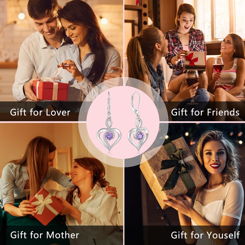 - 💝【Size】Size:4.5*4.5mm Heart Shape Amethyst Birthstone,Total Earring Length and Width is 36.5*15.5mm.