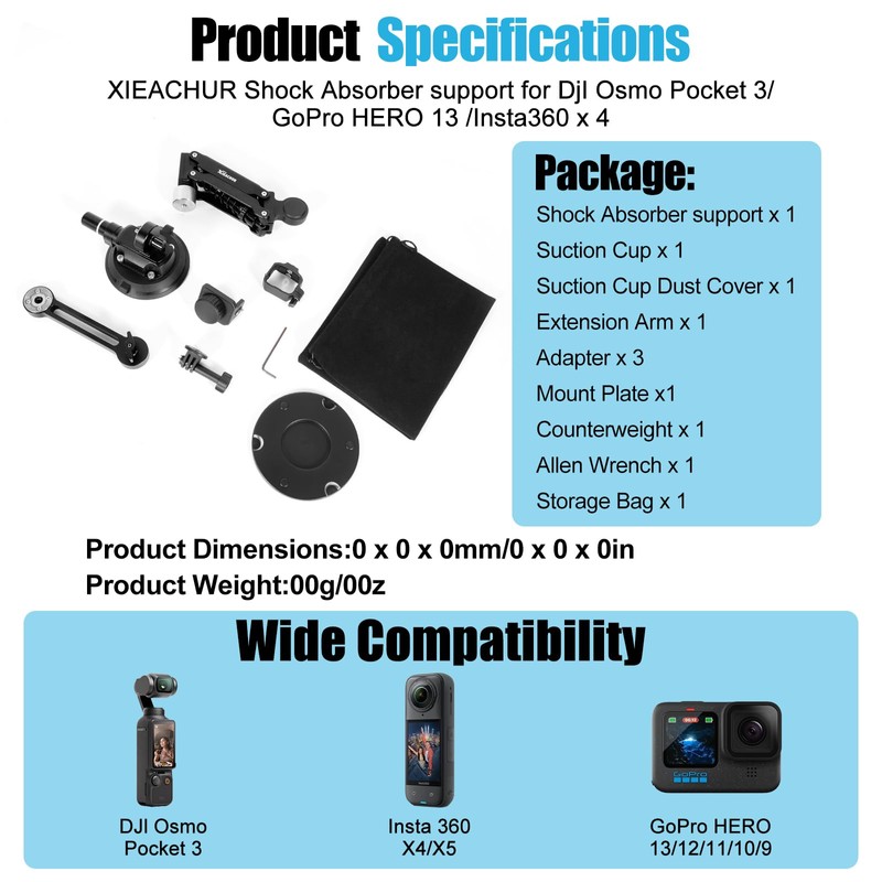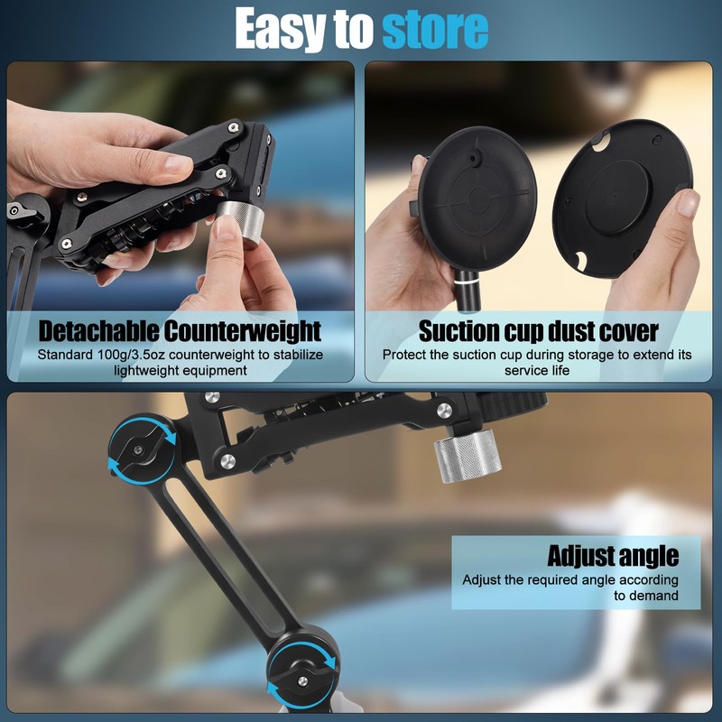 - Complete Kit with Warranty:Lightweight and easy to carry. Includes stabilizing arm, vacuum base, cover, extension arm, adapter, mounting plate, counterweight, adjustment tool,Comes with one-year warranty service