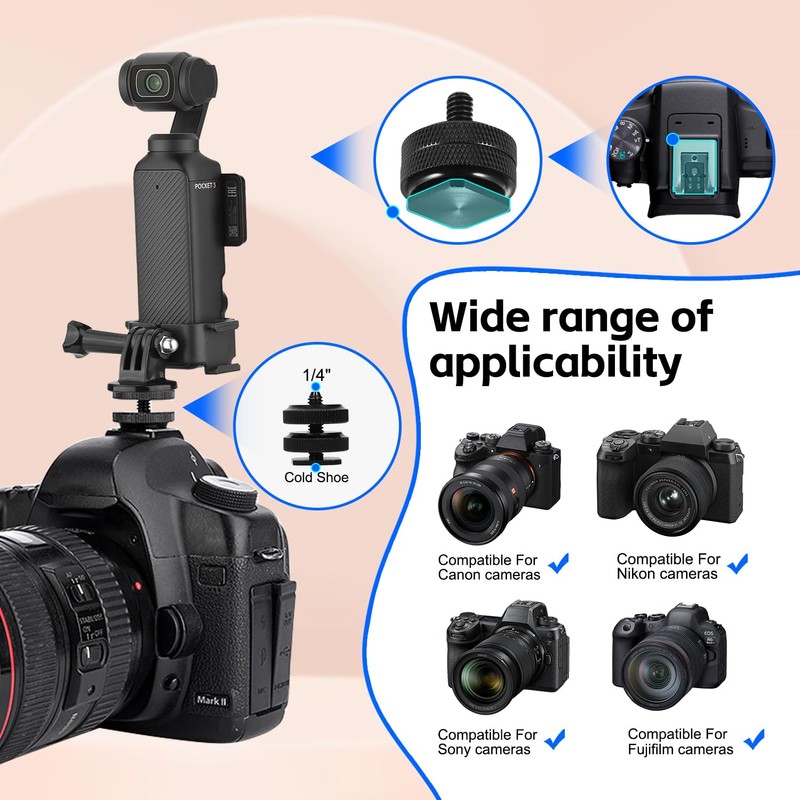 - ✔ UNIVERSAL COMPATIBILITY - Safely compatible with DJI Osmo Pocket 3 as well as any DSLR, mirrorless cameras or rig systems with standard cold accessory shoe