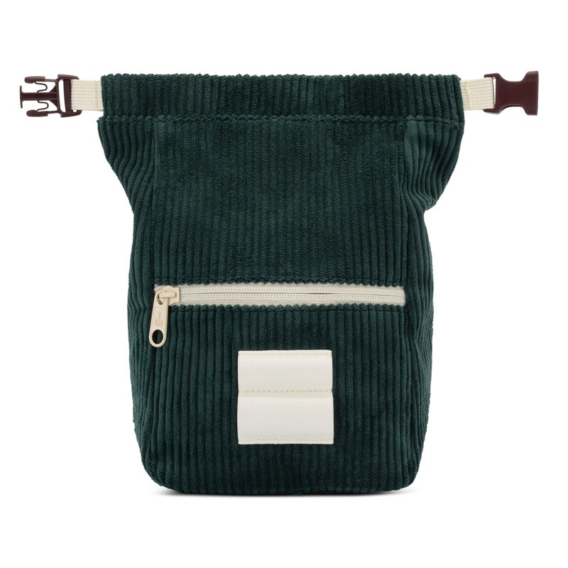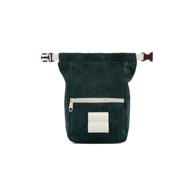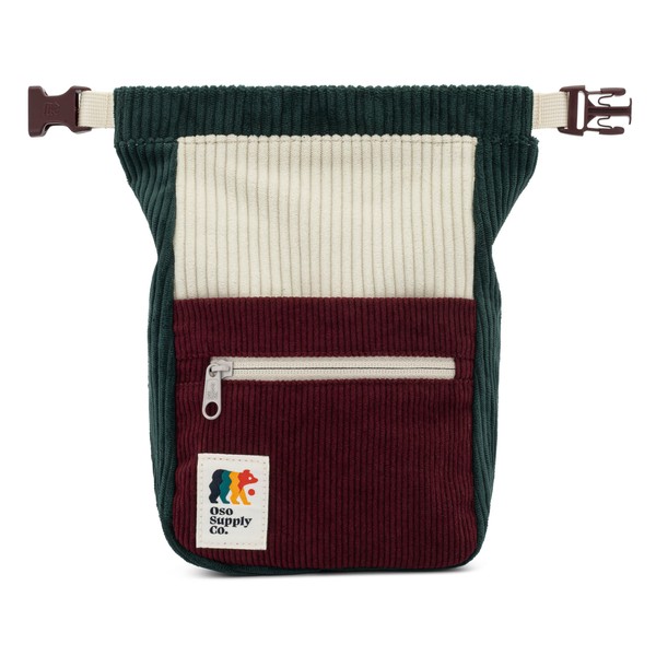 Oso Supply Co - Retro Corduroy Bouldering Bucket, Large Size Freestanding Chalk Bag for Rock Climbing, Magnetic Roll Down Closure, Dual Brush Loops, Zippered Pockets and Pouch (Maroon and Pine Green)