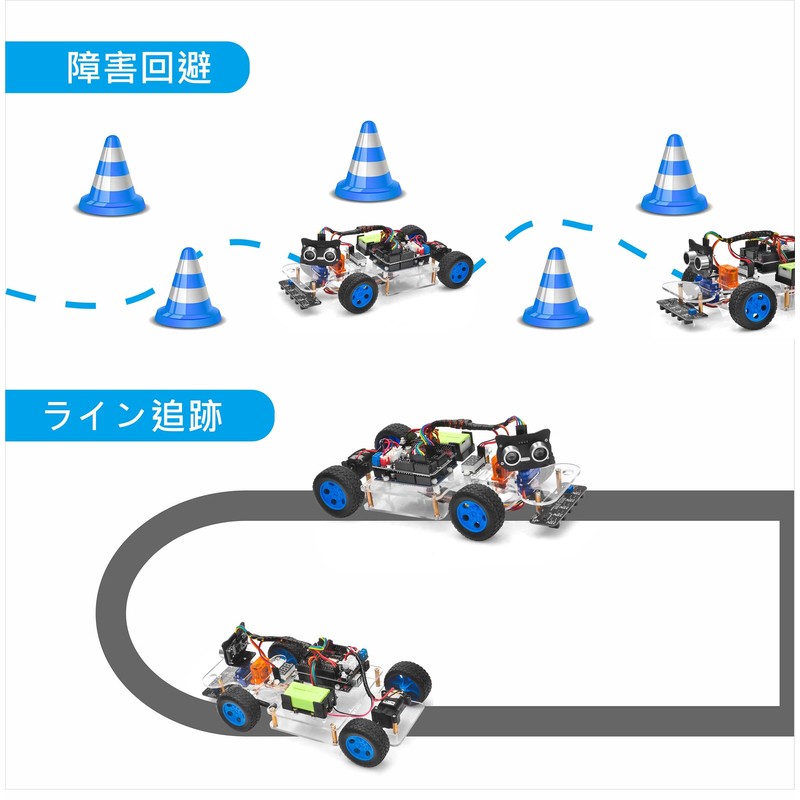 - MULTIPLE WORKING MODES - Support multiple working modes: automatic transmission, line tracking, ultrasonic avoidance, wifi IOT control, Bluetooth APP control. APP is compatible with Android and IOS phones