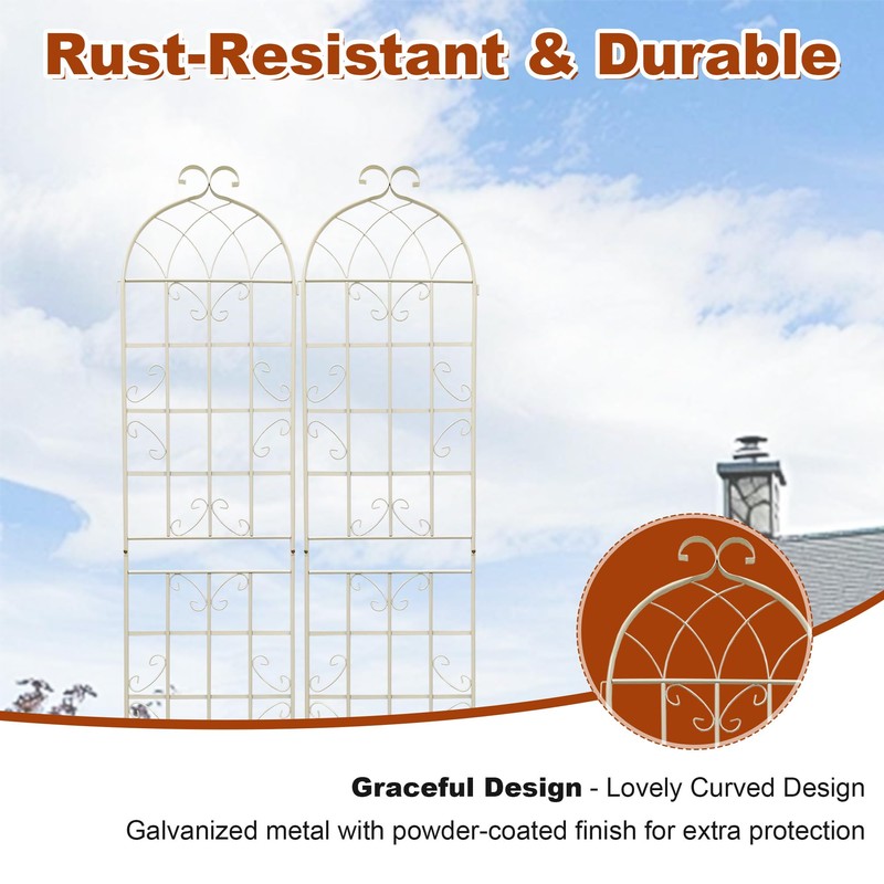 • 🌼【Heavy-Duty Build】:Built with heavy-duty galvanized steel tubing and finished with a premium powder coating, this trellis is designed to withstand outdoor elements without bending, cracking, or rusting. The reinforced structure offers excellent stability for supporting heavy climbing plants, making it a reliable choice for year-round use in your garden, yard, or patio.