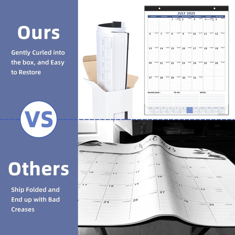 - Wall Calendar: Unlike others, our calendar curls neatly into the box, setting it apart from the rest. This large planner features a PVC cover and spans 18 months, from July 2025 to Dec 2026. With no missing pages or duplicated months, it provides an easy and effective way for you to keep track of your schedule and plan ahead.