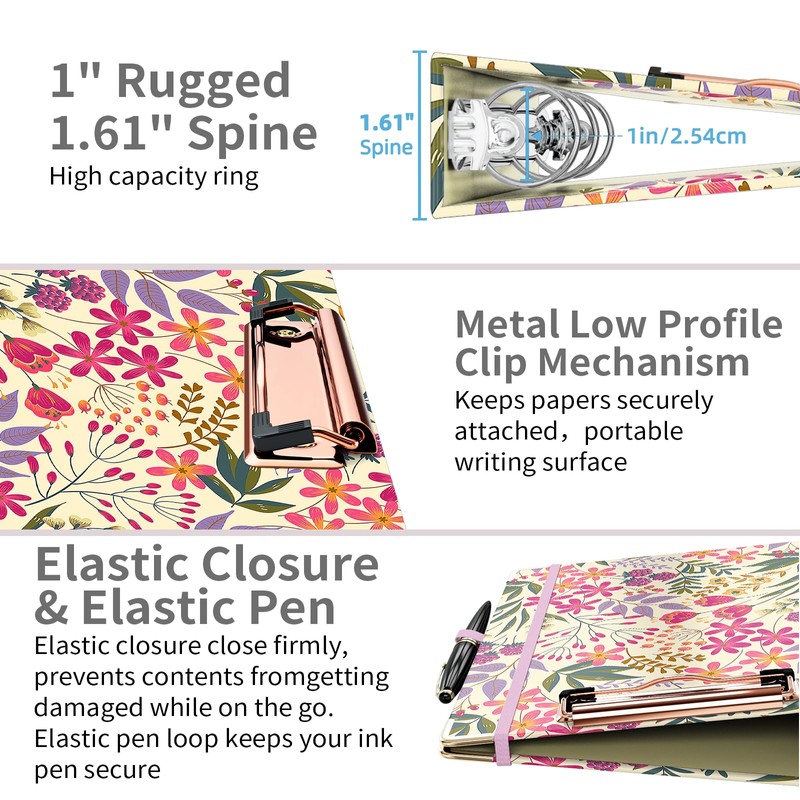 Ospelelf Mini 3 Ring Binder 1 Inch, Cute Binder for 5.5" x 8.5" with 5 Tab Dividers, File Folder Labels and Low Profile Clipboards, Floral Binder for School Supplies and Office Supplies